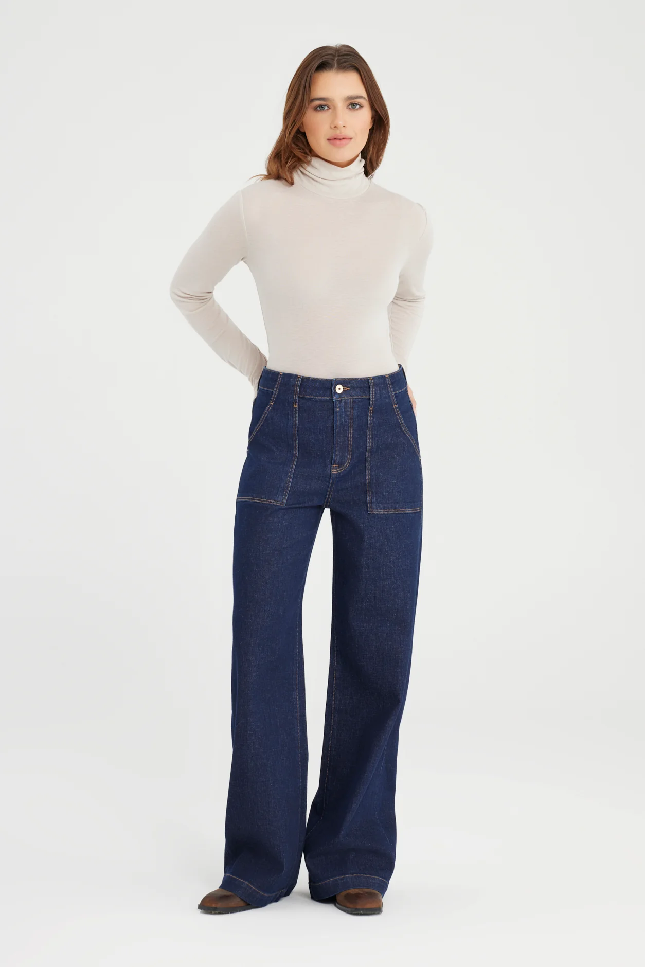 - Het model is 175 cm lang en draagt maat 27 – L32. Valt ruim. Overweeg een maat kleiner te nemen.