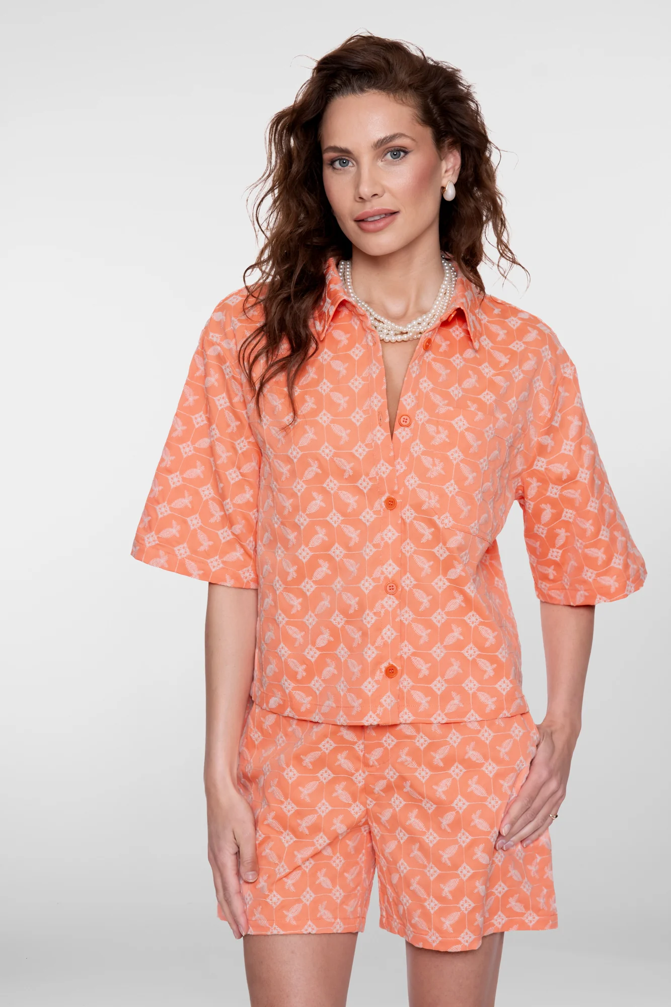 Deze blouse is met zijn coral kleur een echte eye-catcher. Het heeft een boxy fit en het subtiele embroidery patroon wat het ontwerp een speelse en vrouwelijke touch geeft. De luchtige mousseline kwaliteit zorgt voor een zachte, lichte feel. Combineer met de bijpassende short voor een krachtige co-ord look of kies voor het T-shirt Michigan voor een meer sportieve look.