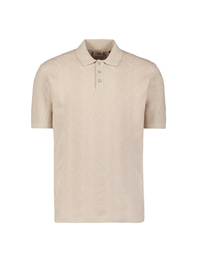Het gebreide poloshirt met korte mouwen heeft een subtiel reliëfpatroon, wat zorgt voor een moderne en stijlvolle uitstraling. De zachte katoenmix biedt optimaal comfort en kan zowel bij casual als formele outfits gedragen worden.