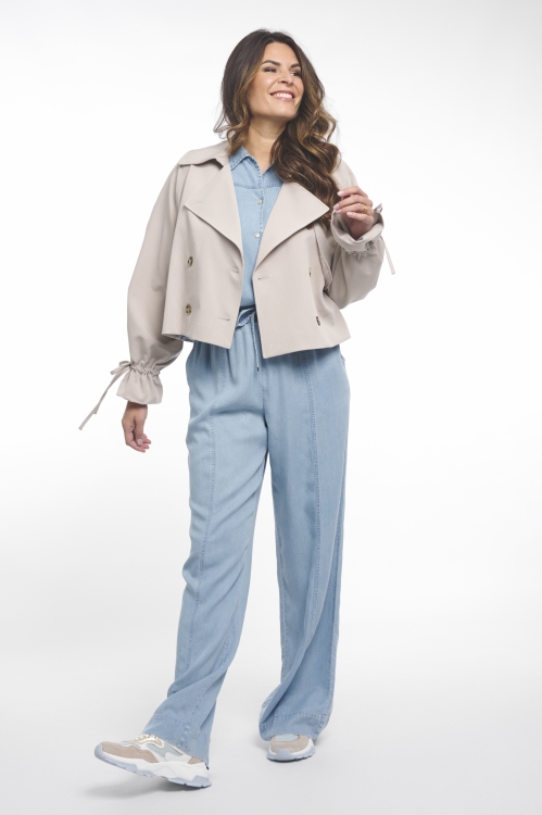 De Maxime Jacket van Zoso is een echte eyecatcher voor het nieuwe seizoen. Dit korte jasje is uitgevoerd in een lichte polyesterkwaliteit en heeft een moderne double-breasted sluiting met stijlvolle knopen. De reverskraag en de subtiele schouderdetails geven het jasje een chique uitstraling, terwijl de soepele stof zorgt voor een comfortabele fit. Het ontwerp valt iets getailleerd, waardoor de Maxime mooi aansluit op het lichaam.